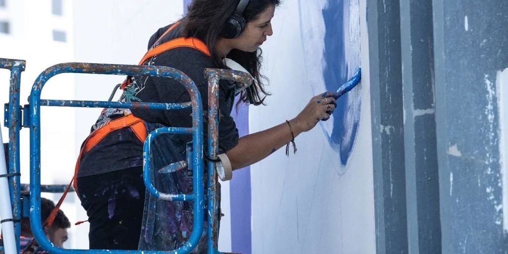 En participant à ce festival ce sont des contraintes techniques que s’est confrontée l’artiste Meriam Benkirane. De deux murs distincts c’est une seule oeuvre qui émerge. Par ses rouages et ses formes colorées c’est le mouvement tout autant que le vivre-ensemble qu’elle symbolise. Cette fresque murale de 13 mètres par 11 mètres a nécessité deux semaines d’un travail minutieux et intense. Elle a vocation à être pérenne afin d’égayer le plus longtemps possible le quotidien des habitants et les balades des passants-spectateurs.